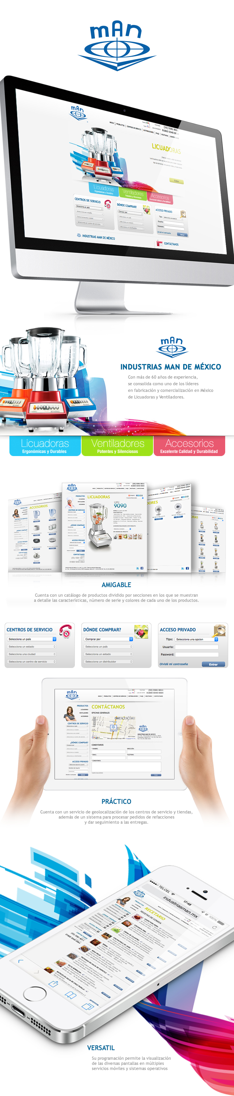 Diseño y desarrollo del sitio de Industris MAN de México, un desarrollo robusto con un gestor de contenidos (CMS) para el control de secciones como productos, recetas, procesos, localización de centros de servicio y distribuidores, así como un modulo de pedidos en línea para distribuidores.
